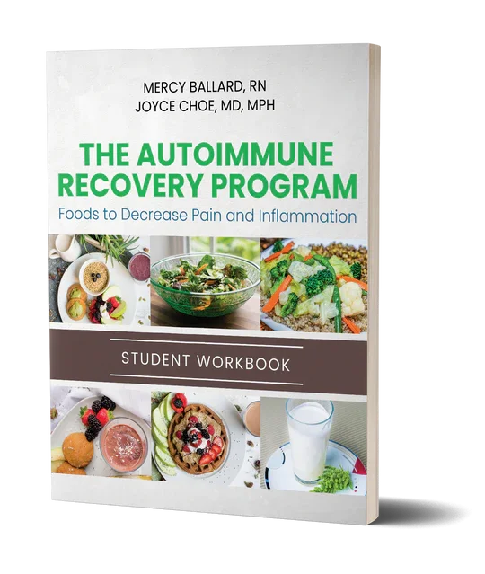 This includes access to all four live clinician-led sessions, your personal Autoimmune Recovery Workbook, live food prep demonstrations, and delicious anti-inflammatory food tastings.
